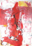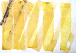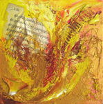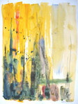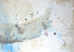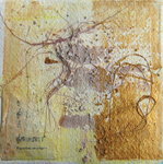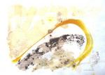 2007For Sherry R A, Oct 09 Ink, extract (kurkuma), gel, sand on paper (cotton rag) With the poem by Nyoshul Khenpo: `Rest in Natural Great Peace / This exhausted mind / Beaten helplessly by karma and neurotic thought Like the relentless fury of pounding waves / In the infinite ocean of samsara'