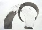 2006Inkt op white rag (katoen) / `Wabi Sabi' (Jp) refering to: impermanence, humility, asymmetry, imperfection and subtle beauty