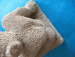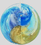 2006Acrylverf en zeezand op katoen-bespannen mand / shamanistische oceandrum, strand-zee, met dank aan Immi Schellevis en Ingrid Foeken